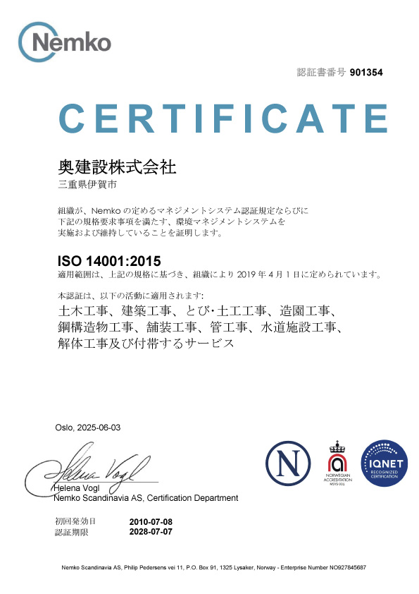 | 2010年7月8日(平成22年) | ISO14001(環境マネジメントシステム)認証取得 |