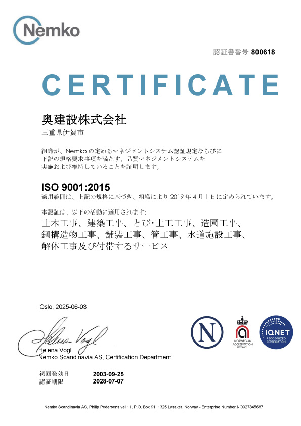 | 1975年10月13日(昭和50年) | 現商号 奥建設株式会社として創立(資本金300万円) |